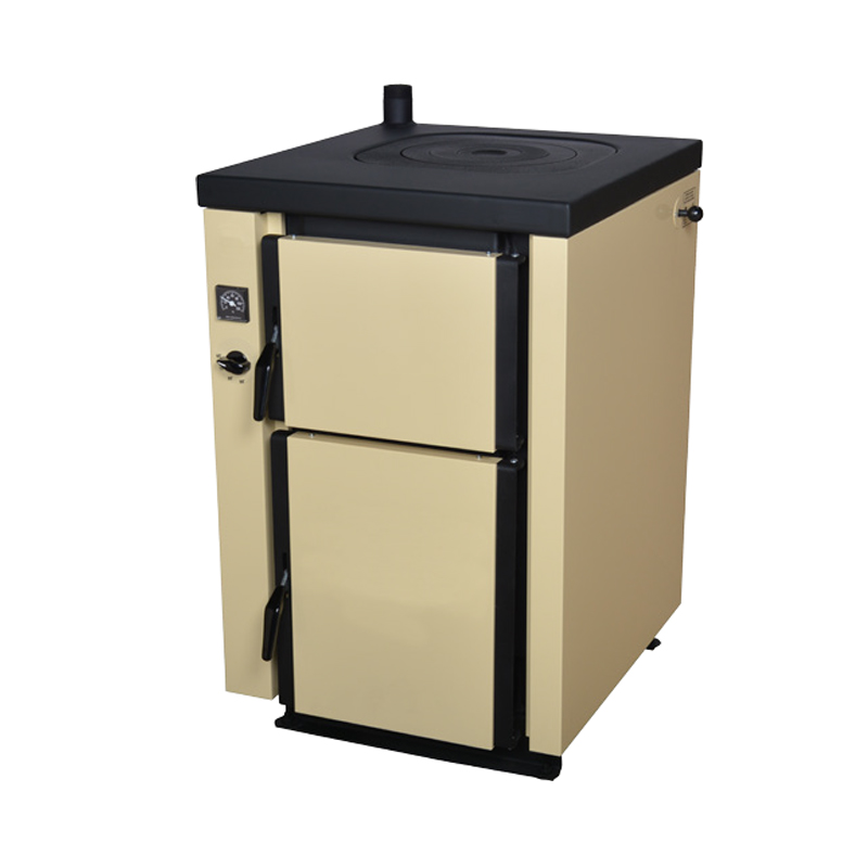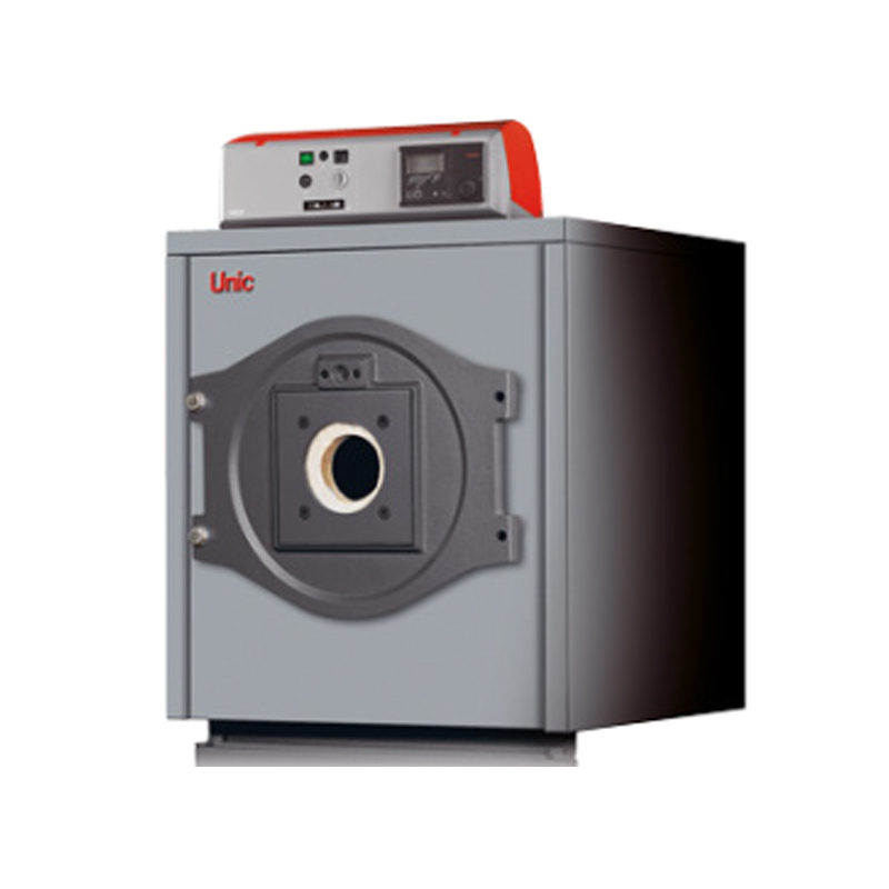 It’s easy to place and install thanks to its small size (450 × 1160 × 755). Can also burn wood; appropriate equipment included. Large ash pan in the bottom for easy ash removal. Built-in cooling coil. Available in right-and left-hand versions. Should discharge to a hot water storage tank and may be combined with other energy sources. Also includes flue (Ø 145, L = 500 mm) for rear connection.